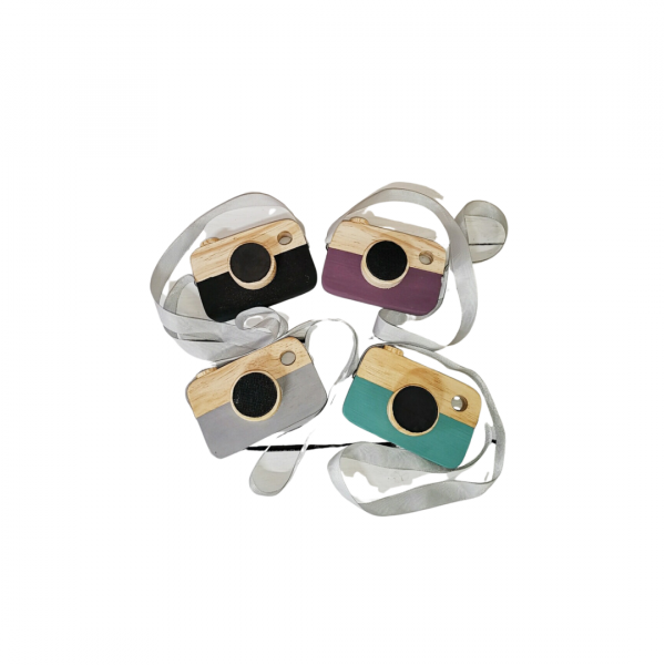 Wooden camera comes in a cotton branded bag for easy storage